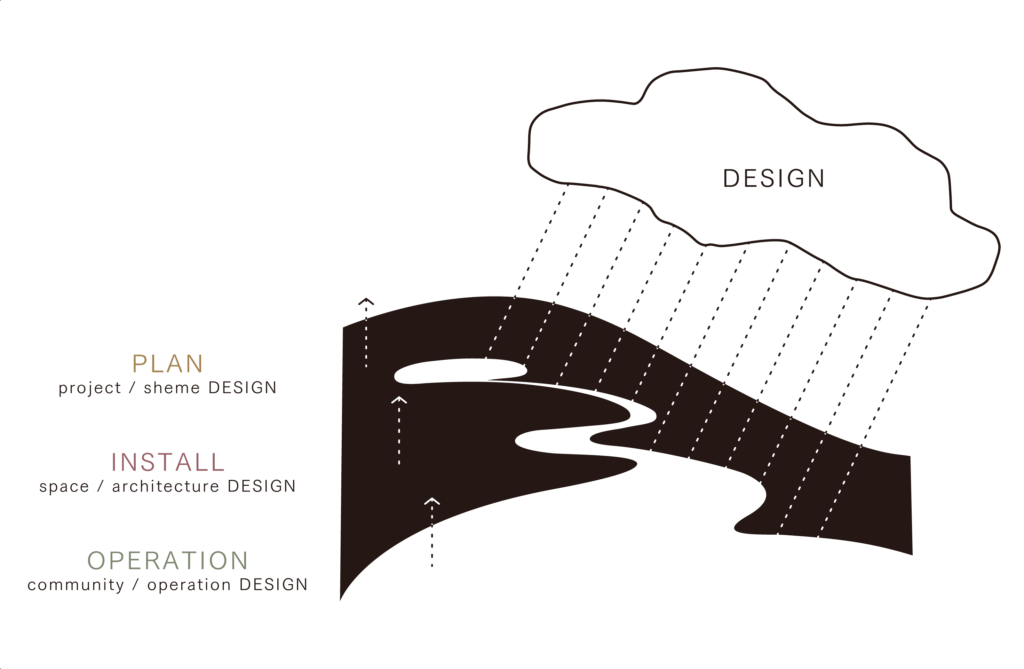また、事業運営の流れの中でも川上の「企画」フェーズから川下までの「運営」フェーズまでを自社で手がけ、その各フェーズにおいてリアルな現場の声を拾い上げ、課題に対してデザインの力で解決します。