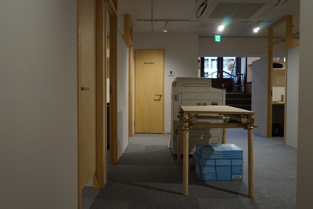 「HERE.Tokyo」は、神田駅近くに立つ地下1階・地上4階の小規模な既存ビルをホテルとして再生したプロジェクトである。1階にはラウンジを配置し、滞在者や訪問者がくつろぎ、出会いを楽しめる場を提供している。エントランスには大きな木製の建具を採用し、連続性を持たせることで、1階ラウンジがまちの一部となるような空間を目指した。ラウンジには小さなキッチンを併設し、飲食物を提供することで宿泊者と地域の来訪者が自然に交流できる空間となっている。2階から4階の客室は、旅行者が我が家のようにくつろげるよう、温かみのある木の風合いを生かした内装としている。また、車通りの多い道路に面していることから、二重サッシを採用し遮音性を高めている。既存の躯体をあえて表現する仕上げにより、リノベーションならではの素材感と空間の個性を持たせ、機能性と心地よさを追求しつつ、地域と繋がるホテルとなることを目指した。